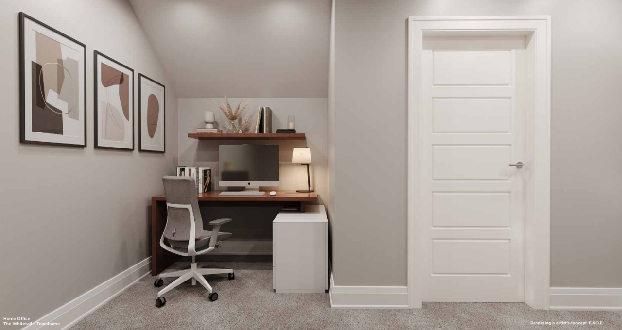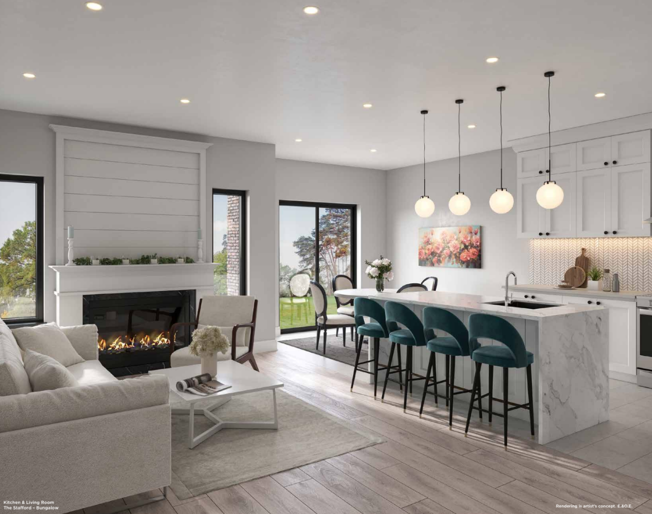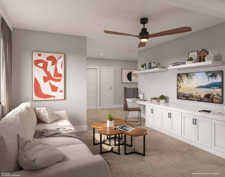 - Each model features high ceilings and modern, open-concept layouts.